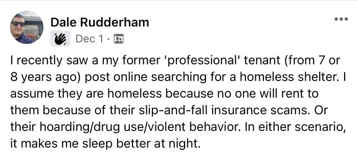 By all means, immediately blame the landlord without knowing why they were being evicted.
