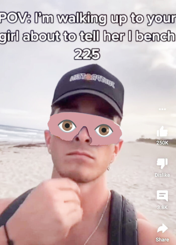 Pov: hes wearing 3 dollar sunglasses so he probably couldnt afford taco bell for his date. Ps i hope he means 225 for 10.