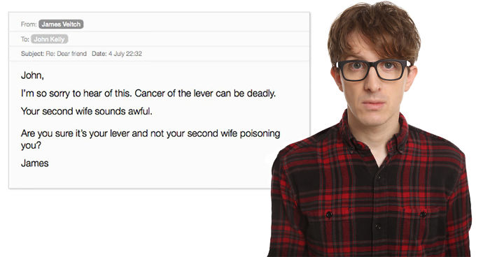 London-based comedian James Veitch spent two years replying to spam emails and compiling the often hilarious conversations that ensued. His book of these Nigerian scam interactions was published in 2015 and is available on Amazon.