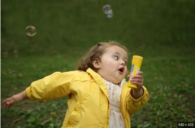 The kid blowing bubbles must be friends with the girl with the magic mirror