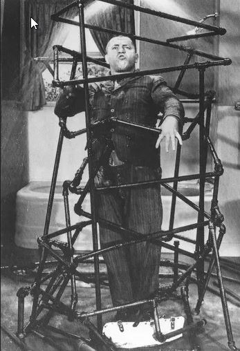 This reminds me of the heating system we had in the house when I was a young kid. The furnace was huge and the vents went up like this. We called it The Octopus.