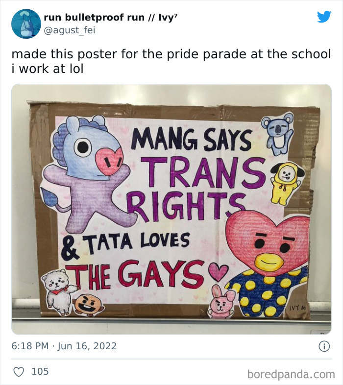 You can tell your LGBTQ+ friends and family members how much you love them, maybe do some activism, join the community, attend a workshop or symposium, or simply put a rainbow sticker on your laptop, and most importantly, have fun! Same as we bet the people who made the pride signs featured on our list did.