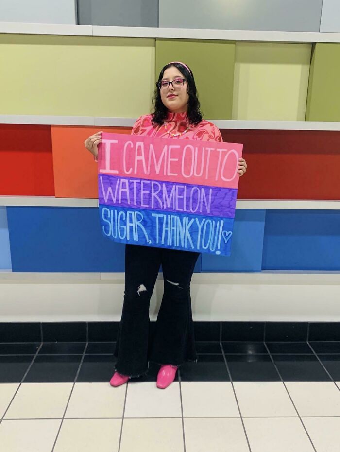 When I Came Out To My Dad, Watermelon Sugar By Harry Styles Was Playing On The Radio. I Saw Harry Perform 2 Weeks Later, So I Made A Poster About It