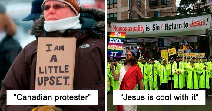 Sure, 99% of the time, protests are serious affairs. People are making their voices heard, standing up for causes they believe in, and fighting to change the world. Still, there’s nothing wrong with injecting some humor into the mix. When done right, it can be downright hilarious and help spread the message you were trying to get across — and that’s exactly what these funny posters did. Keep scrolling to see them for yourself!