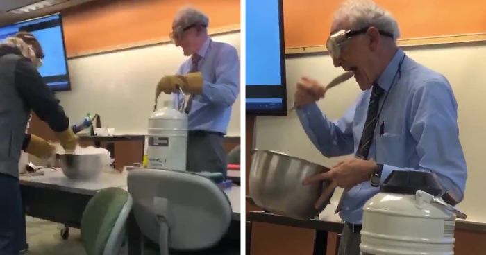 Student Films And Shares All Of The Crazy Things Her 70+ Y.O. Physics Professor Does During Class And People Love It