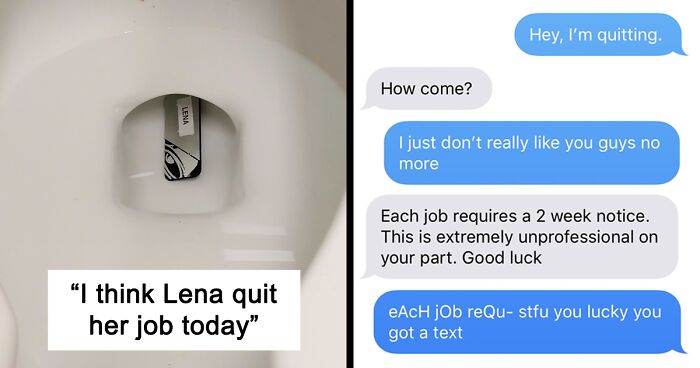 Load More Replies...How did the two weeks notice ever even start? It takes my company longer than two months to even post the job, let alone hire and train someone new so what is the point of it? It’s not like you could all of a sudden finish all your work in two weeks either. It’s so awkward to have to stick around for two weeks after you’ve made it known you no longer liked the job.