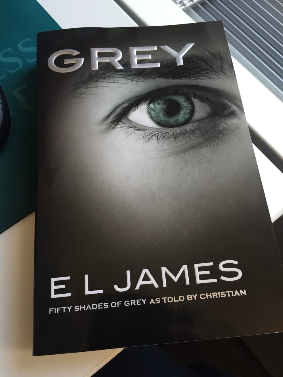 I'm cringing because that's NOT Fifty Shades of Grey. There's the 3 original books: Fifty Shades of Grey, Fifty Shades Greyer and Fifty Shades Freed, told by the woman's viewpoint. Then the author penned 3 more, Grey, Greyer and Freed, essentially the same books, but told by the man's viewpoint instead. That clearly is the book Grey, Not Fifty Shades of Grey. Sorry, I can't help being persnickety when it comes to books. But yeah, LaserBrain is correct, don't lay books down like that, especially library books.