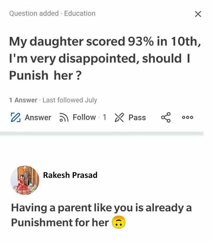 My mother when i compare my younger sibling to me right after she compared us