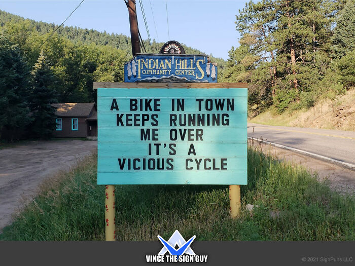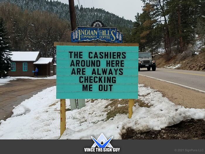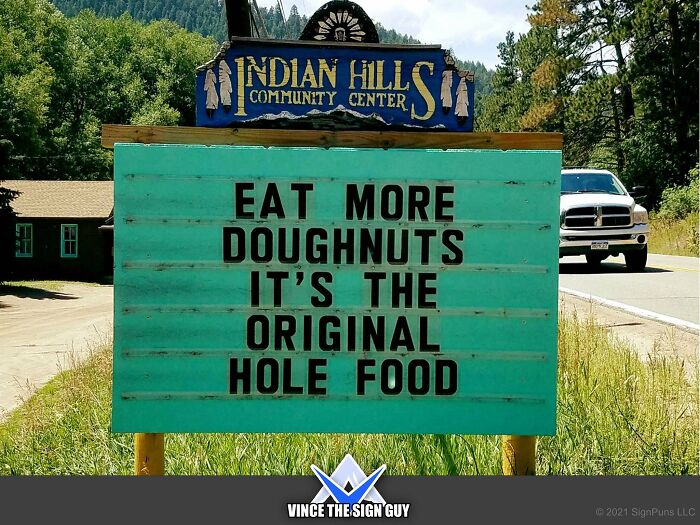 To find out more about the puntastic Indian Hills Community Sign, Bored Panda reached out to its creator Vince, better known as VinceTheSignGuy on social media, who shared some very interesting insights about his sign.“I built and started putting punny/funny messages on the sign, as a volunteer at the Indian Hills Community Center, starting on 4/1/2013,” he said.