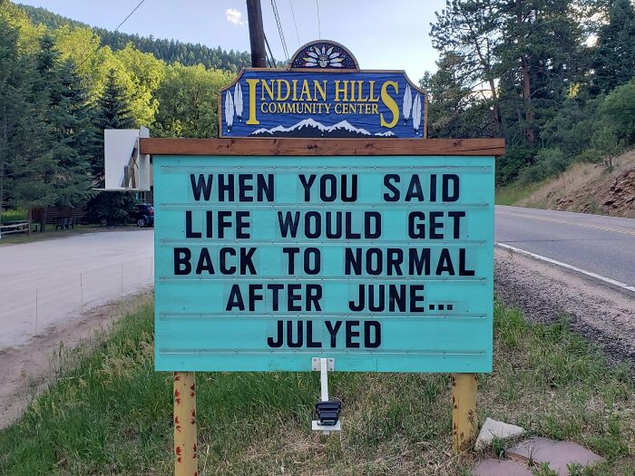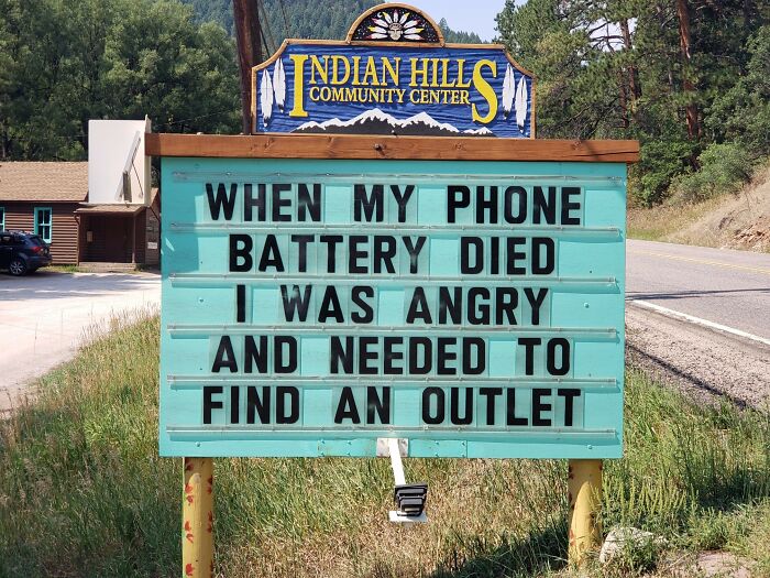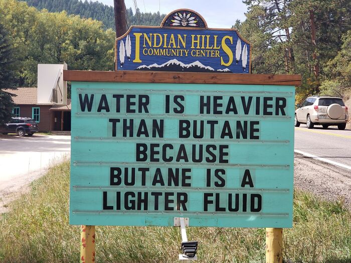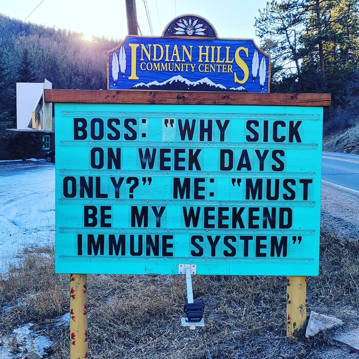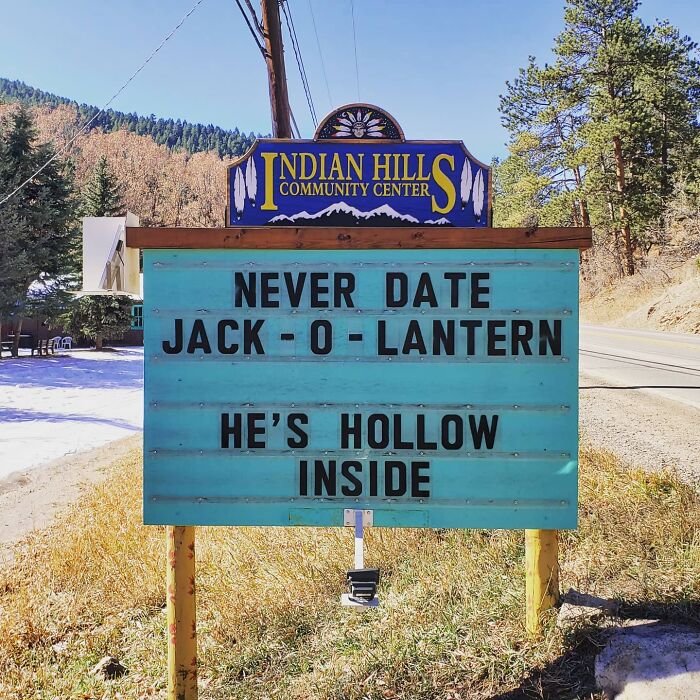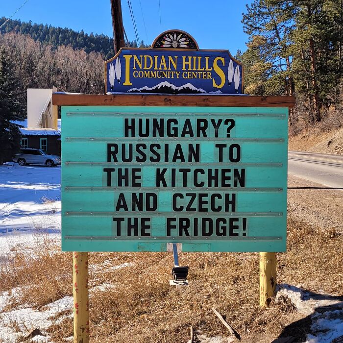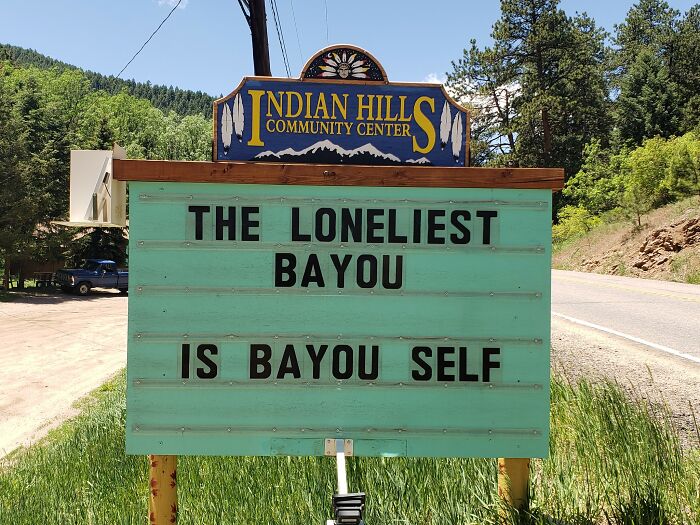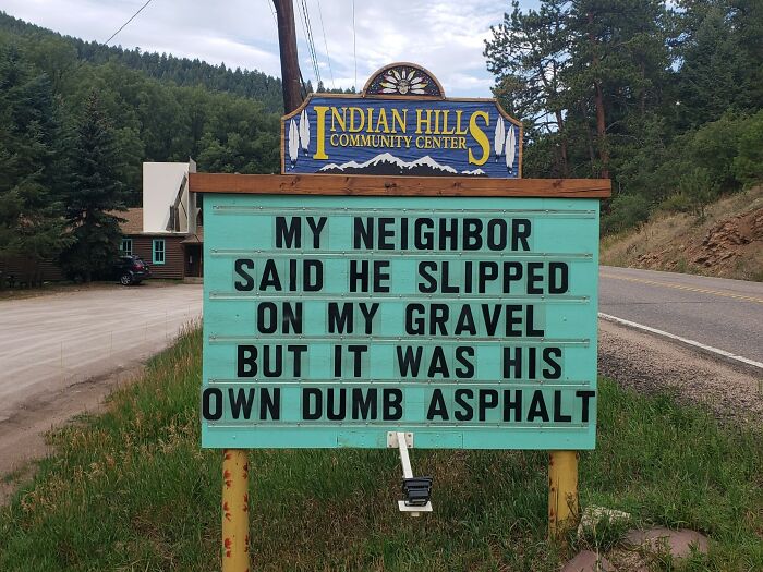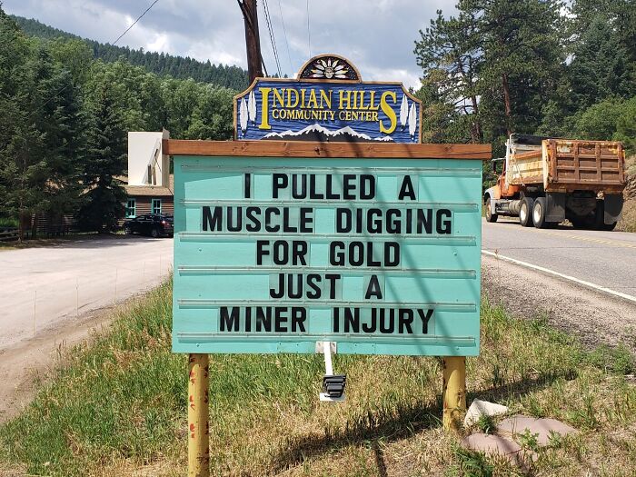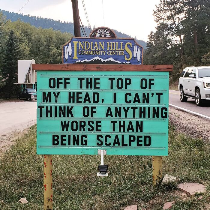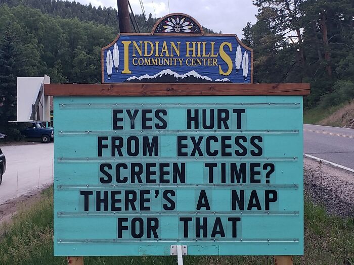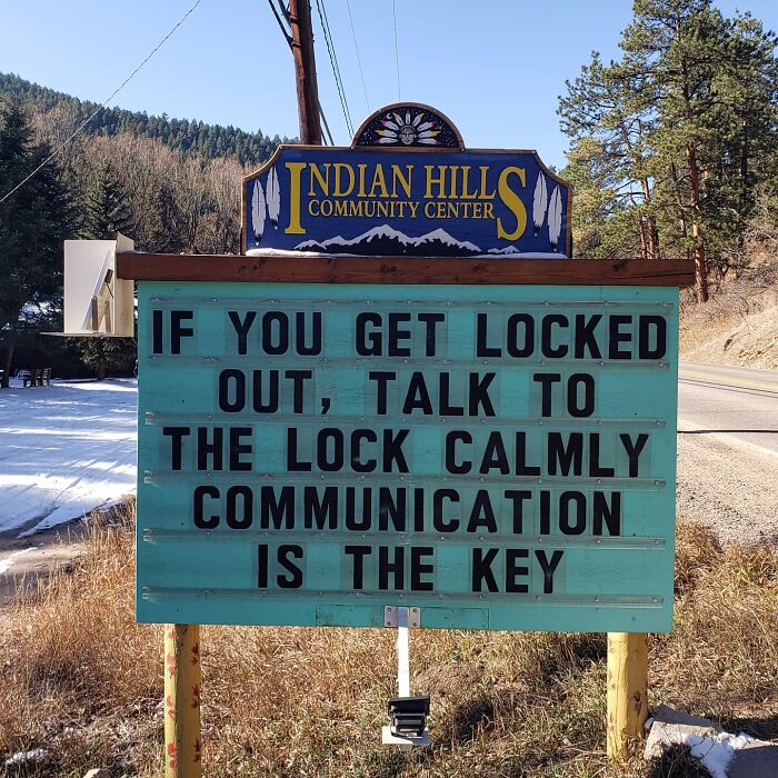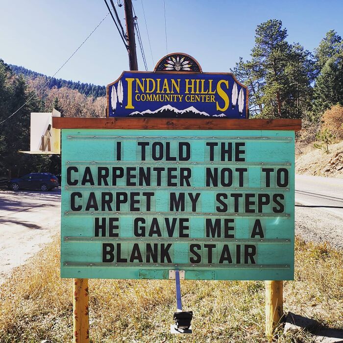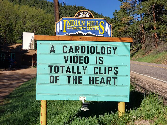 No less puntastic (if not even more!) is the Indian Hills Community Sign that has gained almost a cult following for its smashing one-liners, hilariously cheeky jokes, puns, and you name it. The sign makes road wisdom meet dad comedy, and the result will surely make you chuckle.