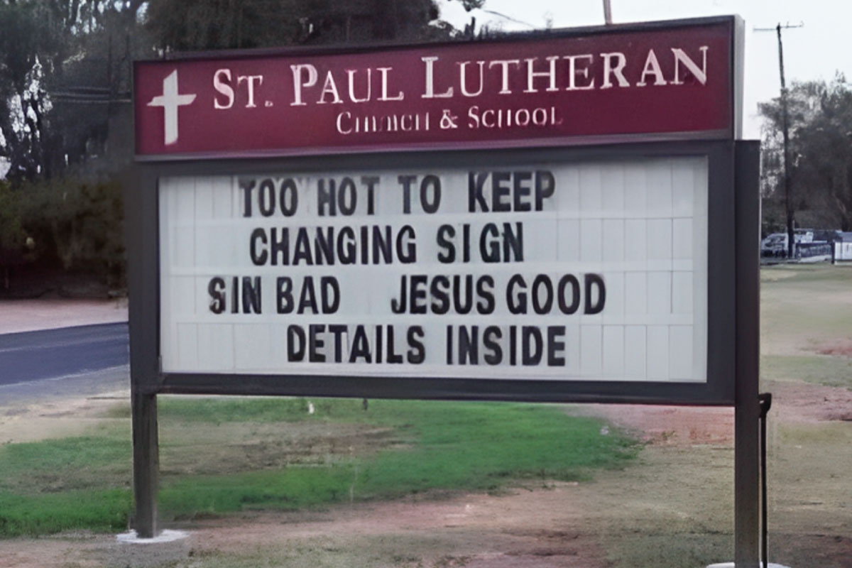 Another common type of hilarious sign you might see featured in the Funny Signs subreddit is one from outside of a restaurant or fast food establishment. But according to the Houston Sign Company, these can be hit or miss. They might grab the attention of people passing by and make them stop to take a photo or wonder what business shared the hilarious message in the first place. And if the sign goes viral on social media, it’s a sure way to bring in new customers.