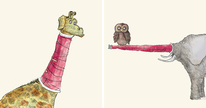 The book is about broken beings, literally and sometimes metaphorically. I always thought that there is something both sad and cute about animals wearing plaster casts, so I decided to make a story about them. What seems to be an ordinary light-hearted kids’ book, gradually turns into a melancholic story about creatures struggling with broken situation.