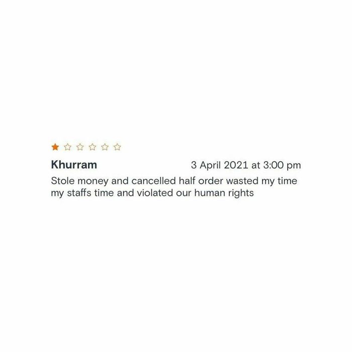 “Funnily enough, one thing I have learnt is that most people only really write reviews if it’s really bad or really good—rarely in between,” the author of Takeaway Trauma told us. “I think sometimes people are so annoyed and angry that in the heat of the moment after just receiving their ‘bad food,’ they go on to the internet and type everything they are thinking about right there and then,” they concluded.
