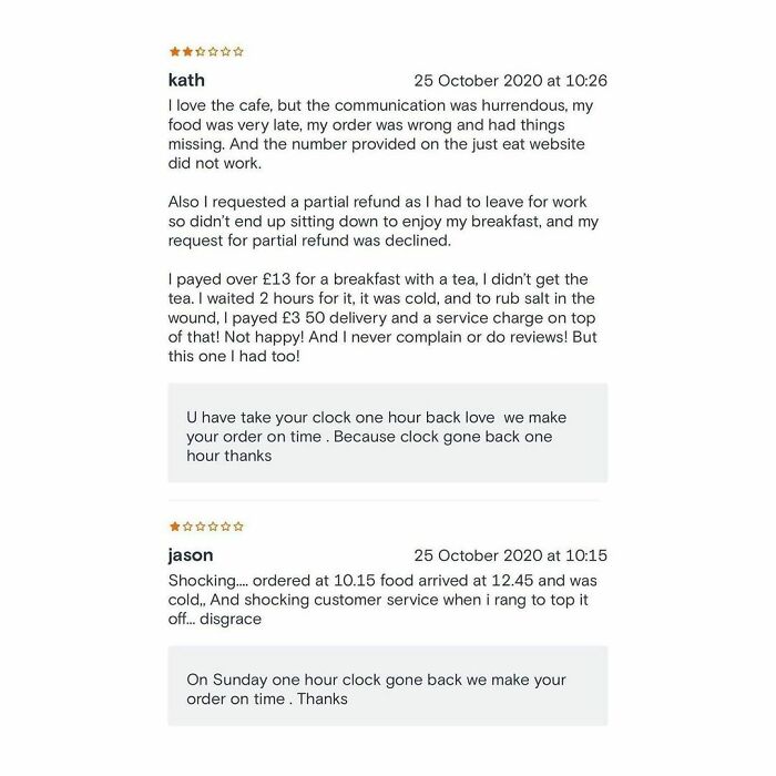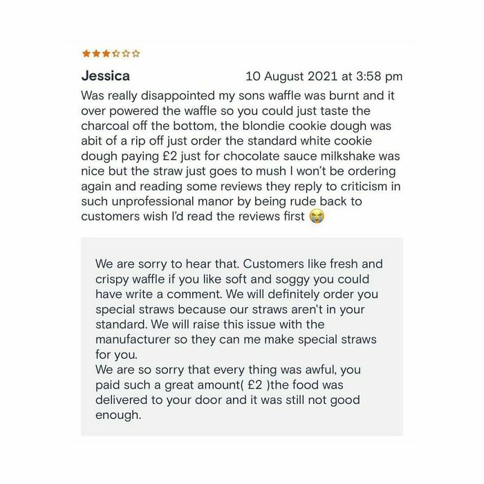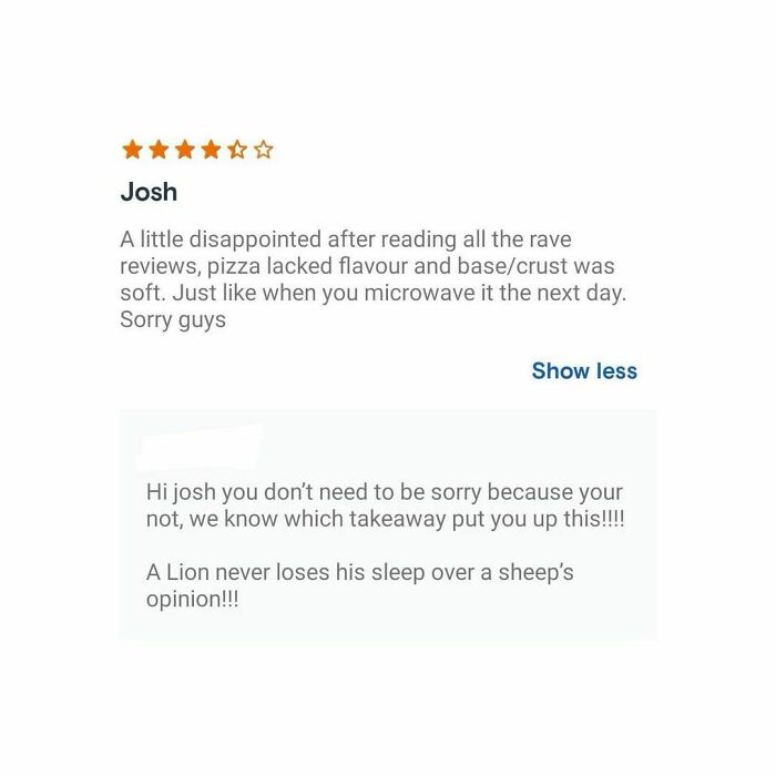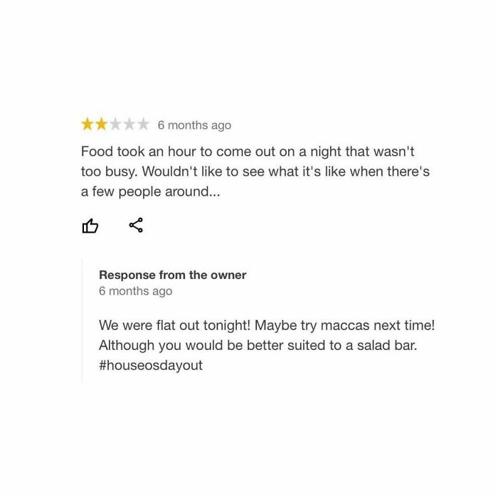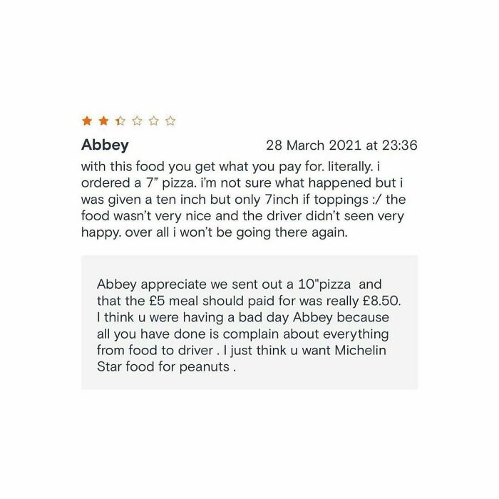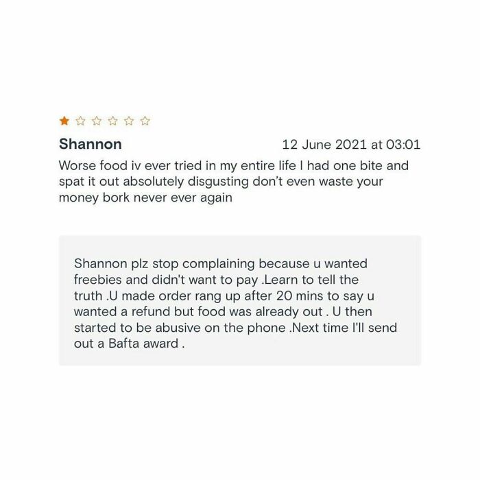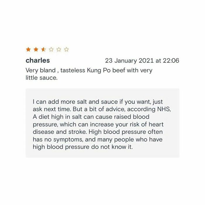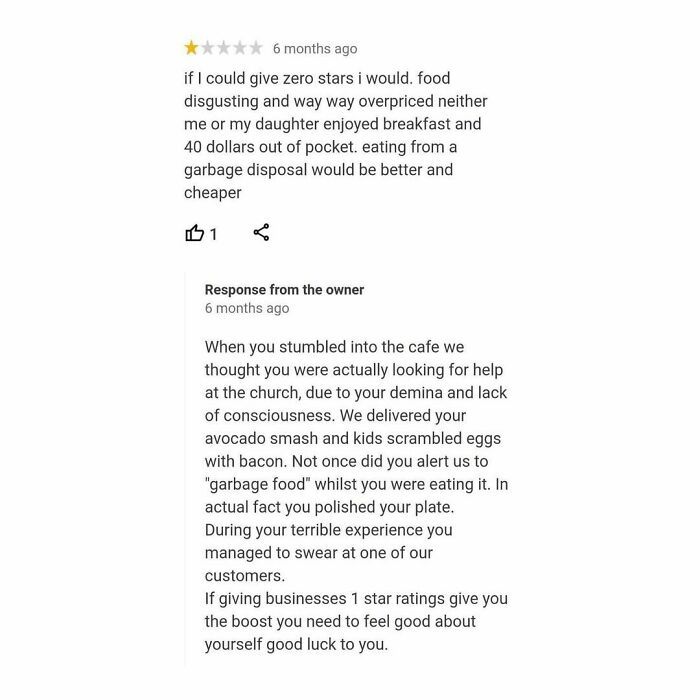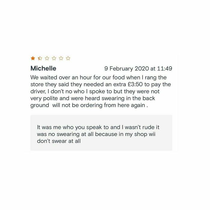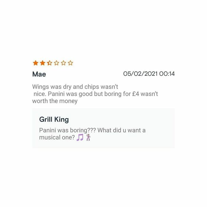 So thanks to the Instagram page “Takeaway Trauma” that’s dedicated entirely to such cases, below waits a solid collection of bad reviews and the badass responses to them. Upvote your faves and be sure to check out part 1 of this post!