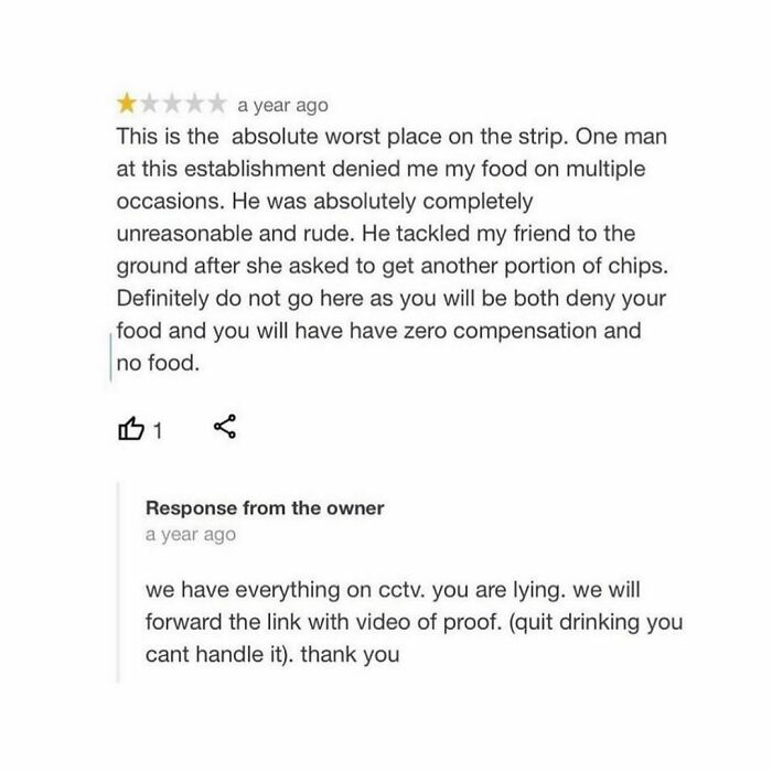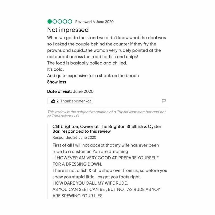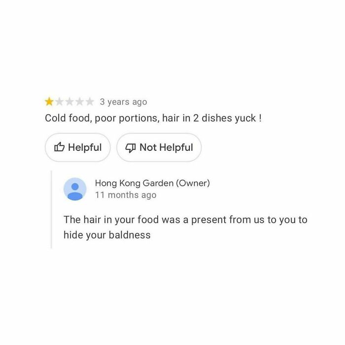 Load More Replies...A lot of these replies to customers are worse than than review itself. I would never patronize a place that attacks a review. It's childish and bad for business, not to mention ego driven.