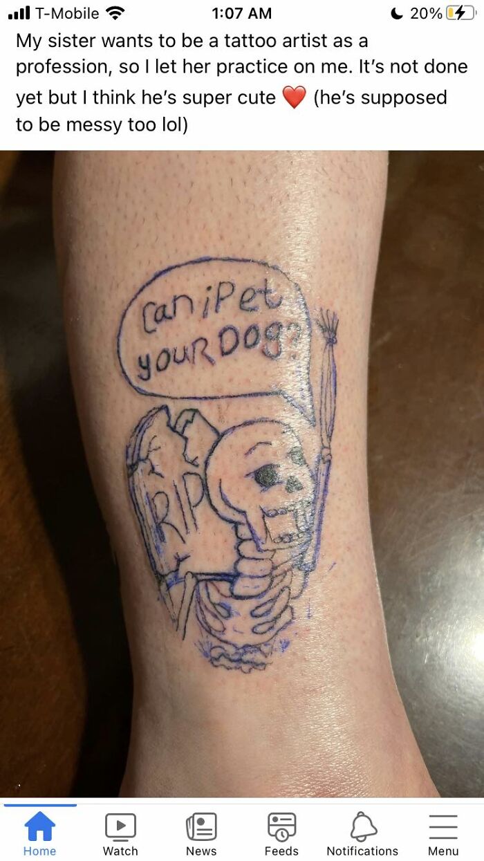 “If you're triggered by skin, and think every post should conform to your CW's... This isn't the place for you. This is a place to post truly awful, [crappy] tattoos, and laugh at them together. Any subject matter is welcome, your content warnings are not.” But before you post anything, make sure that you understand the rules that members are asked to abide by.