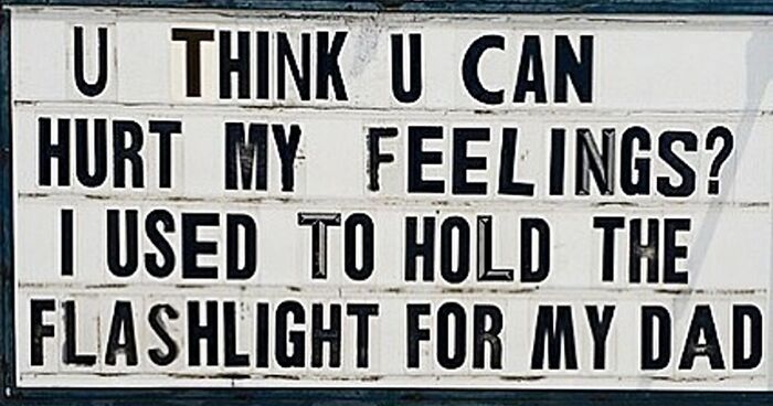 The El Arroyo restaurant is based in Austin, Texas, and has been serving up comedy alongside mouth-watering Tex-Mex dishes since 1975. Remember to upvote your favorite pics as you scroll down. And go ahead and read Bored Panda’s interview with British comedy writer and author Ariane Sherine who told us about the pros of having a limited space or time frame to work with, like when putting together a witty one-liner on a marquee sign.