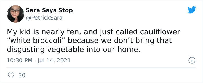 Load More Replies...Which disgusting vegetable? Surely you don’t mean broccoli!!! I practically live on that. Now if u were speaking of cauliflower, ok, nevermind.