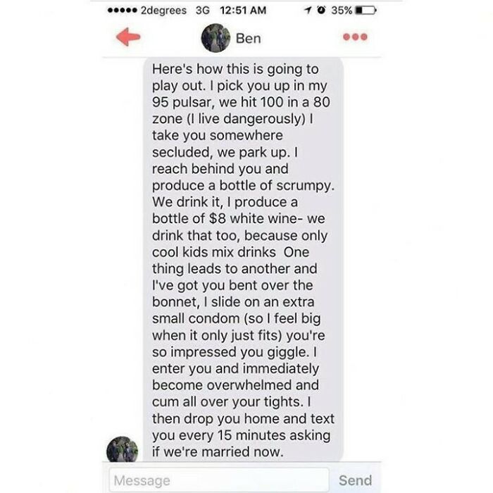 Unfortunately the next text was a d**k pic. He shot himself down.