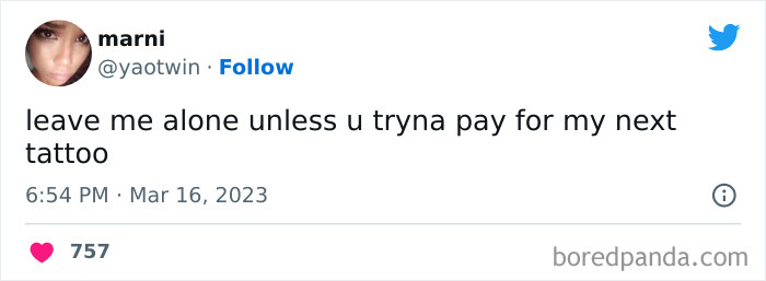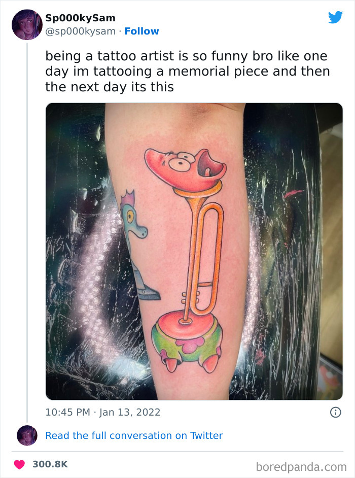 It may take quite a bit of courage to laugh at your own tattoo mistakes, but at the end of the day, isn’t that how you get over something that may have dampened your mood? Don’t forget, even bad tattoos (or annoying people who won’t stop discussing your tattoos) can be turned into an opportunity to joke about the whole thing on Twitter.