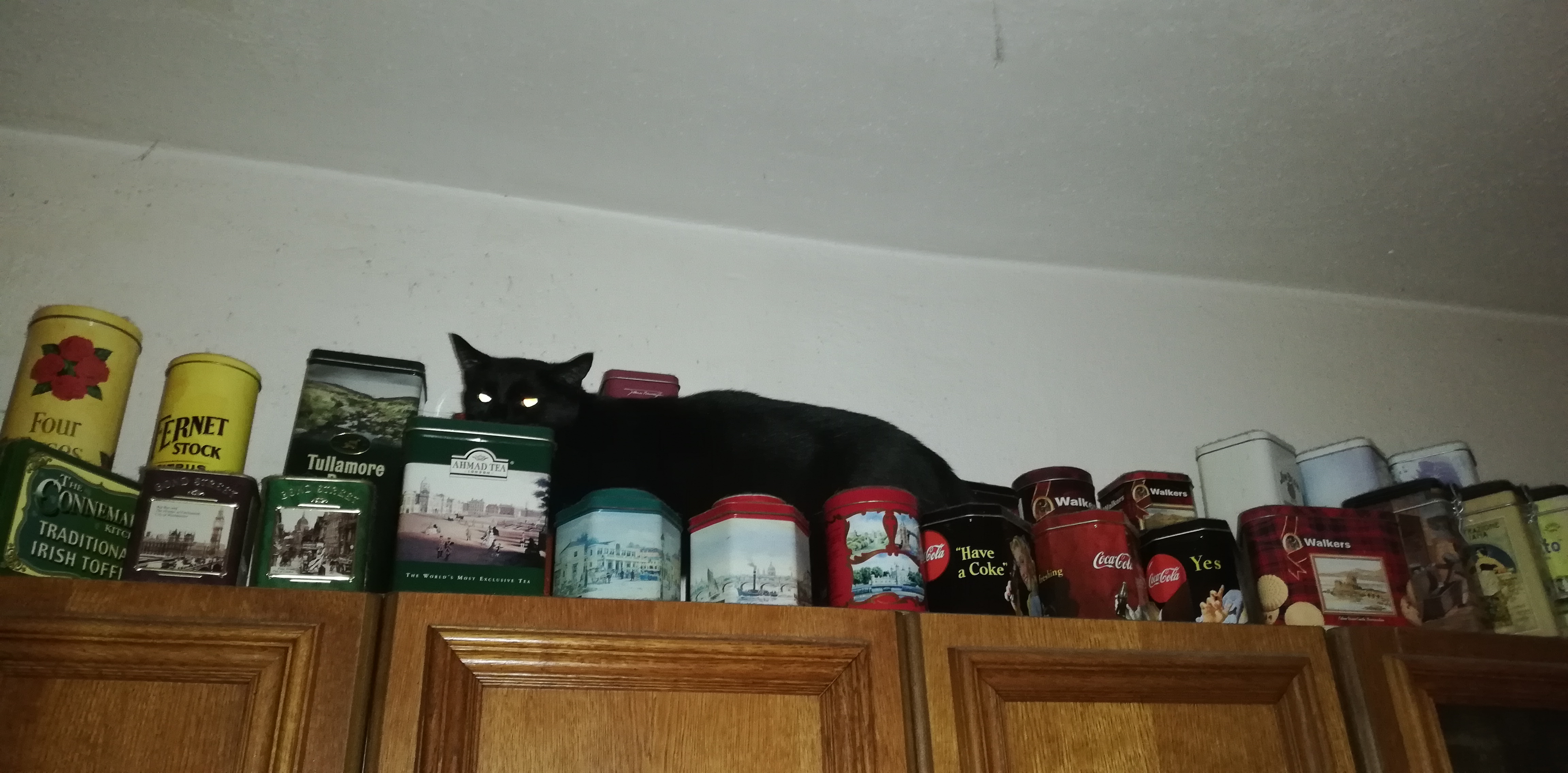 My cat on her second night, managed to jump on the kitchen cabinets somehow without knocking anything over. There is no mid-platform to get there. Still a mystery to this day. IMG_202011...f793cd.jpg