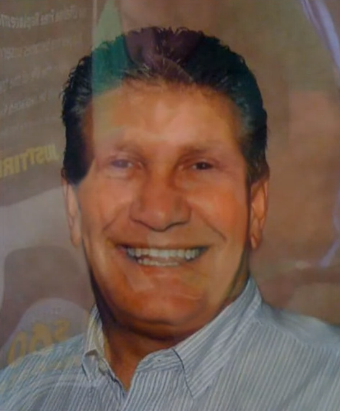 Man in a suit and tie named with a funny name on TV, Brazilian flag in the background.