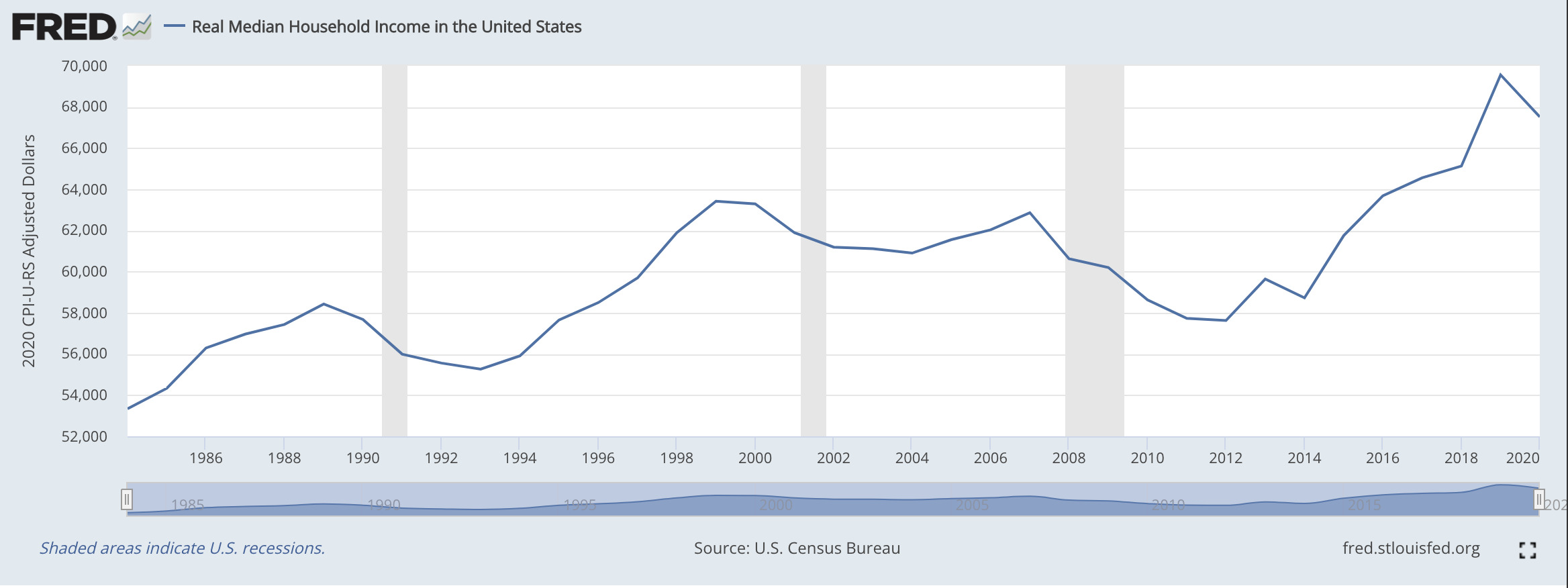 America belongs to one of few countries in the world where life expectancy is decreasing in the last years, so i don’t know what did you mean by “life expectancy is up…” Also poverty levels are down, because they sent “an unprecedentedly large and inclusive set of stimulus checks directly shoveling money to most Americans…” So i am not conviced of your other claims https://edition.cnn.com/2022/04/07/health/us-life-expectancy-drops-again-2021/index.html