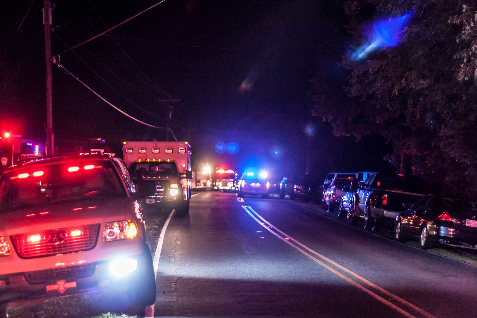 Actually, that white strip around the headlights is part of the fire engine's highly reflective graphics. It's glowing because it is reflecting back the camera's flash. The camera likely adjusted its exposure to the light coming back from the stripe. On the other hand, the wedding photographer likely would have had a wireless flash that could be aimed from a different angle. And/or, could have manually adjusted their camera's settings to pick up more ambient light, such as this one I shot, that is just lit by the ambient lighting: 478698_423...27905a.jpg