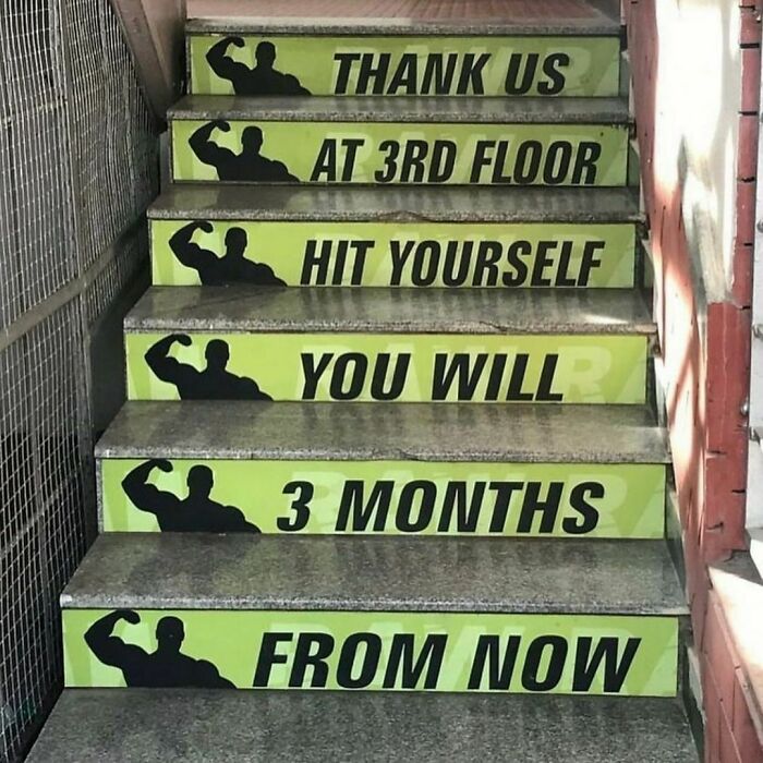 "Hit yourself at 3rd floor, you will thank us 3 months from now." Still doesn't explain the "hit yourself" thing...