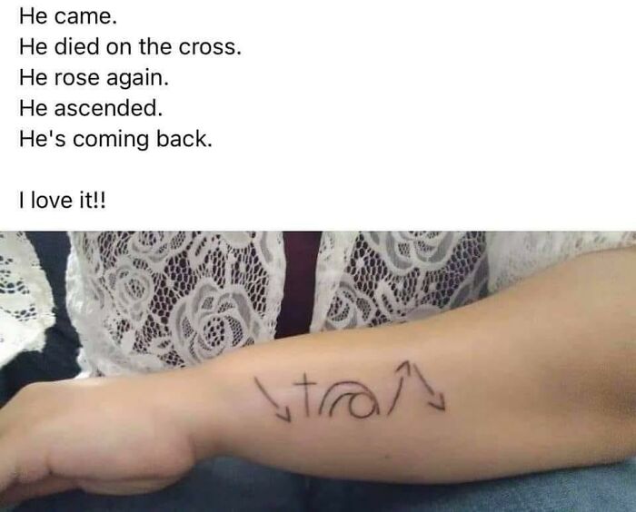 The group is meant for posting “truly awful,” low-quality ink, all in the hope of making people laugh. It’s not meant to be mean and there’s no place for general jerkiness. We’ve collected some of the group’s most interesting features photos, the crème de la crème of bad tattoos, to share with you today, dear Pandas. Scroll down and enjoy.