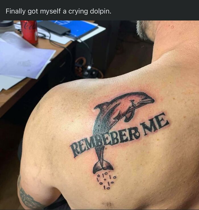 Caption is rude. No need to make fun of someone's issues, just tattoos.