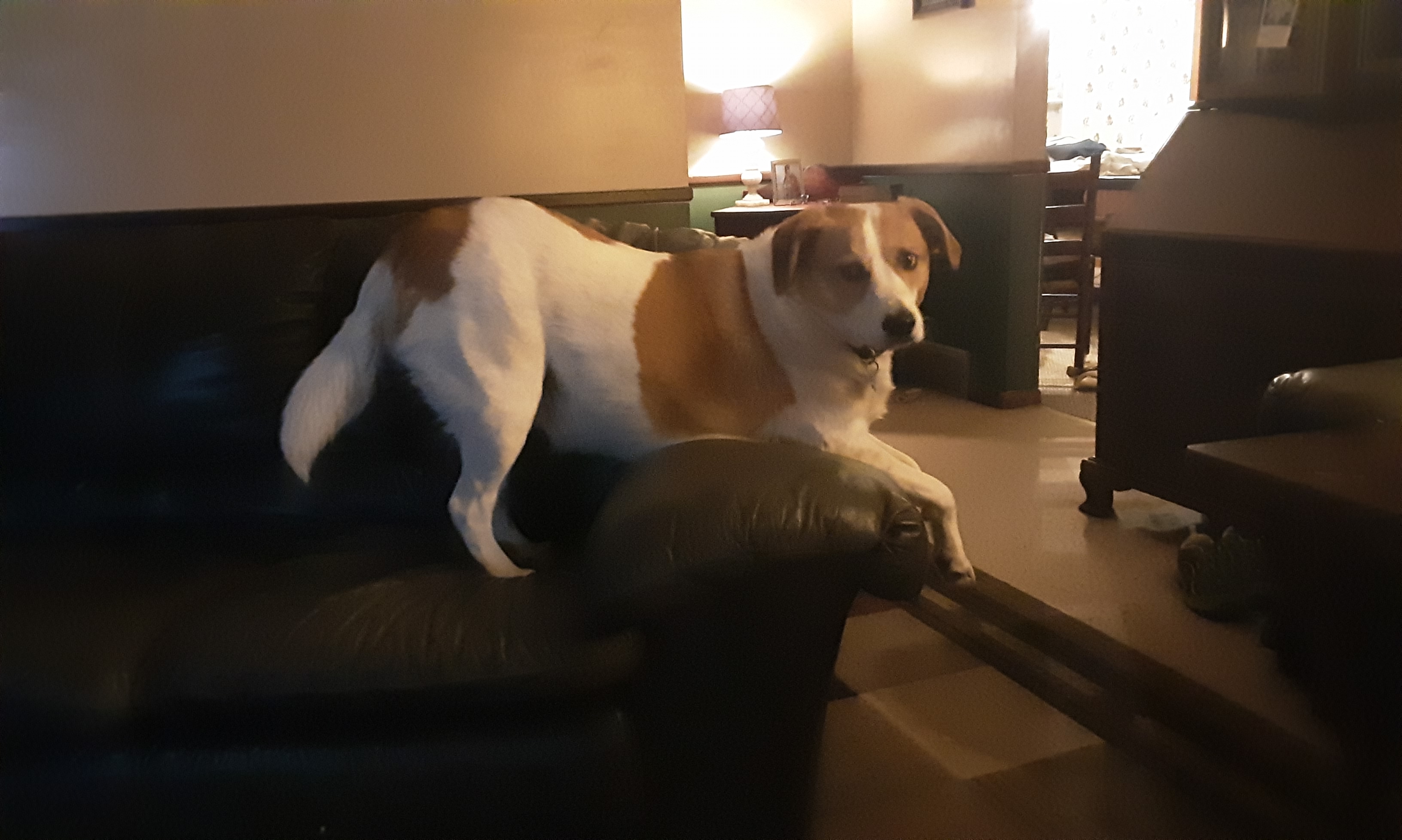 This is the last attempt at not being obvious, for my dog, which falls before the very obvious "talking" begins. I could kill the husband and sons for teaching this to my formerly polite Jimmy dog.