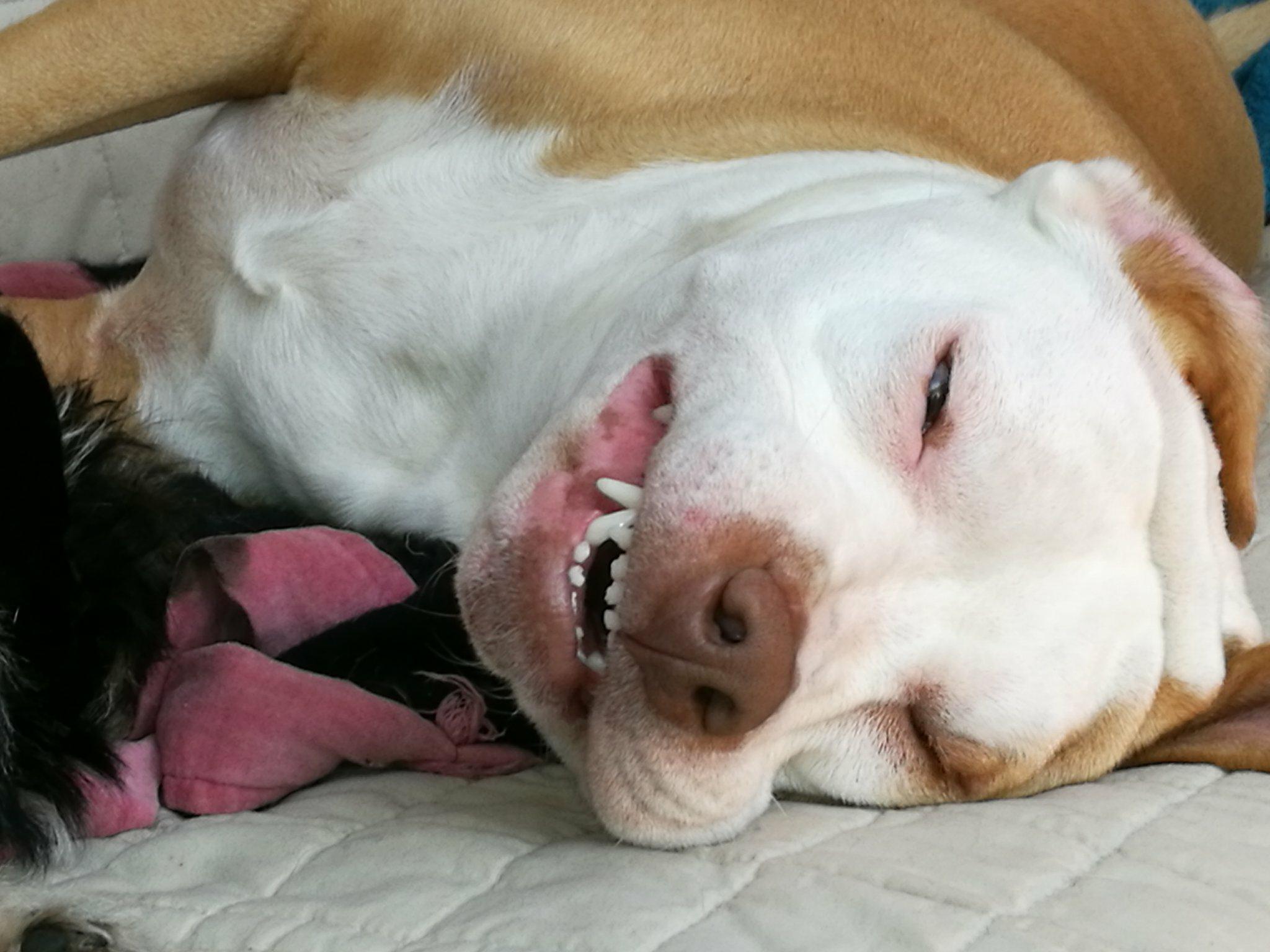 Snoring is also a behavior you might want to examine more deeply. Even though we all love to be startled by our sleeping doggos suddenly barking, howling, or twitching as they’re dreaming about taunting your cat, it may be a sign of an underlying health problem.