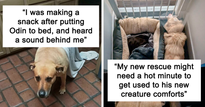 My New Rescue Might Need A Hot Minute To Get Used To His New Creature Comforts