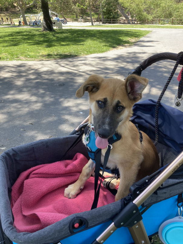 When Stilgar was a puppy, he got sick with distemper. It affected his balance and mobility to the point where he couldn't walk for two months. We, of course, immediately bought a dog stroller and took him on "walks" daily so he could still see and smell the world <3 image-2-66...a45f1d.jpg