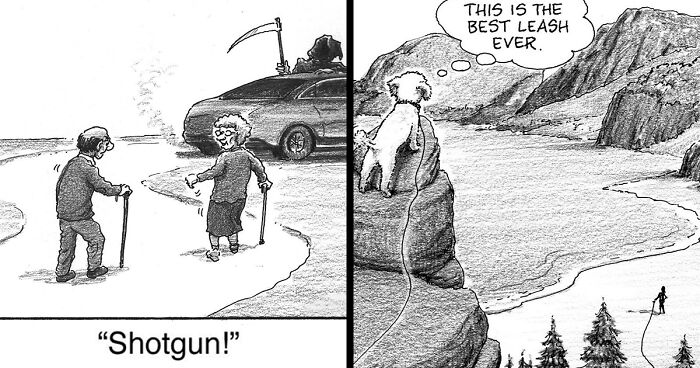 Bored Panda reached out to Harry Bliss again to learn more about his work. His cartoons often show the special bond between dogs and humans, but he also covers other topics that make us smile. We asked him how he chooses the themes for his cartoons and what current events or trends inspire him. Harry shared that he usually doesn't focus on current events or trends. "I’m not particularly interested in commenting on these things; there are plenty of other cartoonists who do it much better than I can. My cartoons are quite autobiographical, with lots of dogs, trees, nature, and the occasional human. I’m all about nature. I draw what I love…trees!"