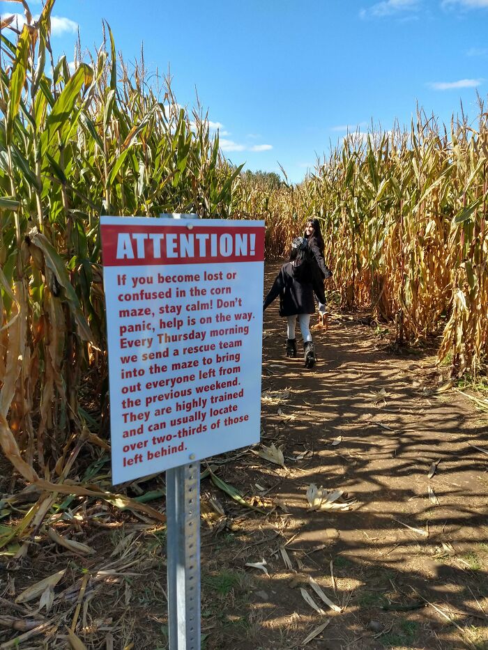 True story - a family was lost in a corn maze overnight a couple years back. Couldn't figure out that you could walk through the stalks.