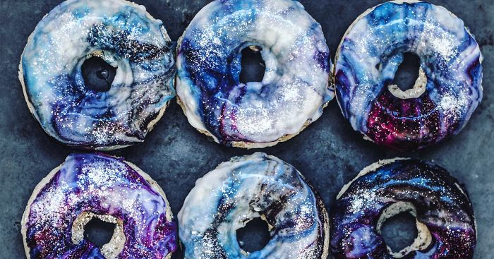 How did she achieve the ‘galaxy’ effect? “This is quite hard to explain, but if you’ve ever done marbling as a kid using coloured dye it is essentially the same thing,” wrote Sam. Afterward, the baker dusted her donuts with vegan edible glitter. Too beautiful to eat, isn’t it?