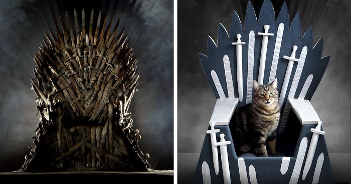Game of Thrones season 8 premiers on April 14th, 2019, so we are still waiting anxiously to find out who will sit on the Iron Throne. In the meantime, Ukrainian designer Kate Agafonova invites people to pay proper respect to the true rulers of their households. Pets. Whether it’s a cat who takes control with its own paws or a dog who’s such a good boy, owners give him more food with the wag of a tail, both will find comfort in Kate’s handmade Iron Throne animal beds.