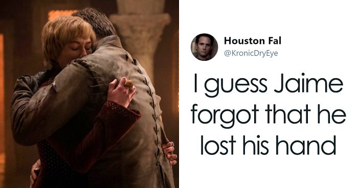 As it is common, every week, HBO releases a series of promotional shots for the show, a handful of spoiler-free ones before the episode airs, and then another bunch afterwards with more juicy details. After the penultimate episode aired, a few new shots were released. One of them showed the emotional reunion of the golden Lannister twins, Cersei and Jaime. Many fans disliked the fact that Jaime returned to his hateful sister-lover to begin with. But this time, the outrage wasn’t about it. Someone was quick to spot that the Kingslayer magically grew his hand back in the promo shot.