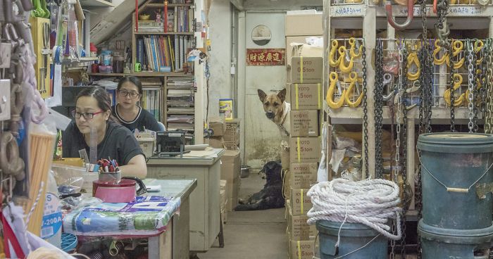 Scroll down the page to see how dogs blend into Hong Kong’s urban life.