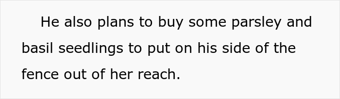 At this point, the garden was but a few leaves. So, OP simply told the neighbor’s girlfriend to please get her herbs at the store from this point on. She didn’t seem to take it that well, though, as she turned red and went back inside.