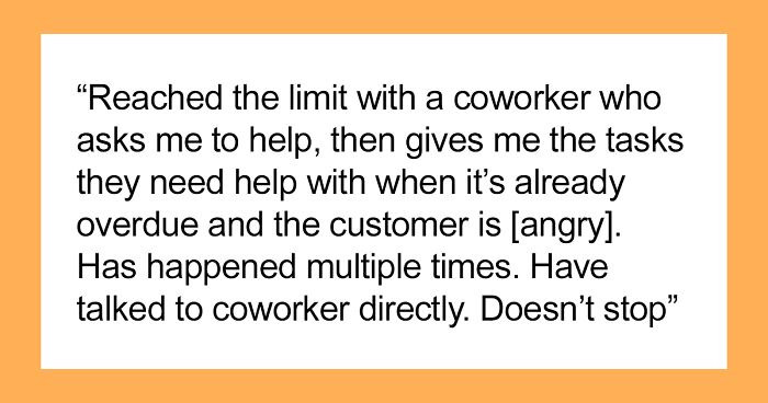 Load More Replies...Yeah, I took on most the tasks of a lazy coworker and then even did her job and mine when she went on maternity leave. Do you think I earned the respect of my boss, or was given the reward of a bonus or raise, considering I saved them the cost of a temporary worker to fill in? No and no. I was just used and then spit out when time for lay offs happened during economic downturns, yet they kept her because she was more senior. I’m guessing. It was a joke in the office that Sherry didn’t do any work in a day and there were days it was literally true. She’d be on the phone talking about her horses or show dogs. Do not do more than the job they pay you for. Employers are not your friends. It is a business transaction. Your work for their pay. Doing extra does not earn you anything other than they know they can take advantage. I should have known when to leave the party.