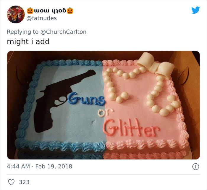 Load More Replies...I imagine that most of the people that order the cakes with glitter, bows, and tutus versus guns, trucks and basketball are the kind of people that follow very strict gender norms, and would not want a daughter that drives a truck or a son that wants to dance. Am I right?