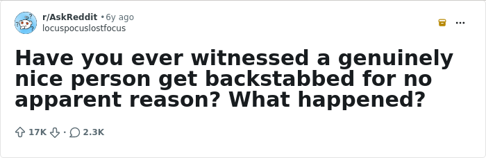 The backstabbing stories in this thread follow the same blueprint almost every time. The person who gets betrayed isn't targeted despite being good. They're targeted because of it. Goodness, competence, and genuine likability make people feel threatened in ways that are apparently still producing the same results they did in ancient Rome. The setting changes. The behaviour does not.
