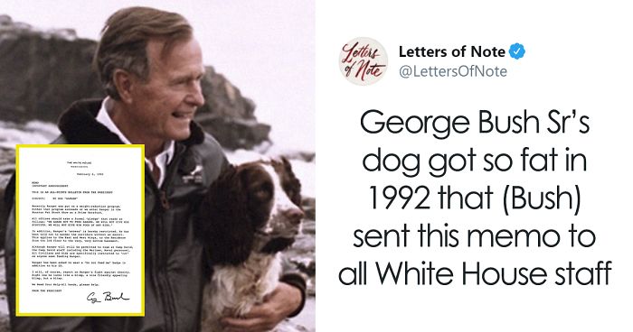 Ranger became so fat that Bush had to send out this hilarious memo, instructing staff to refrain from feeding Ranger “food of any kind.”
