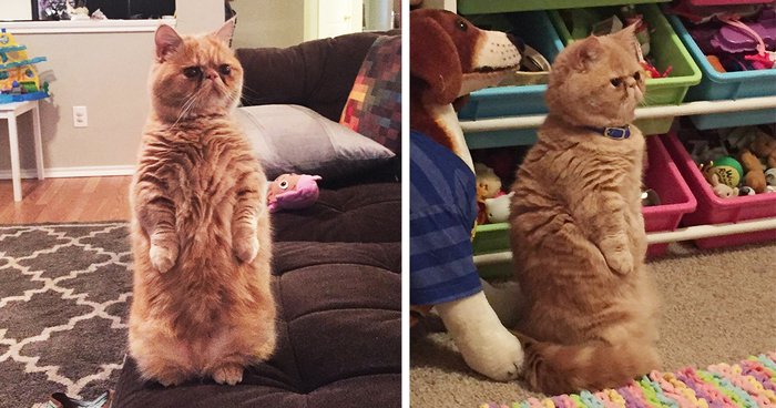 People like to say “awww, he thinks he’s people” when they see an animal standing on two legs, but sometimes, they may not know how close they are to the truth. George is a cat that prefers to stand on two legs and looks like he intends to one day become a real person and take over the world.