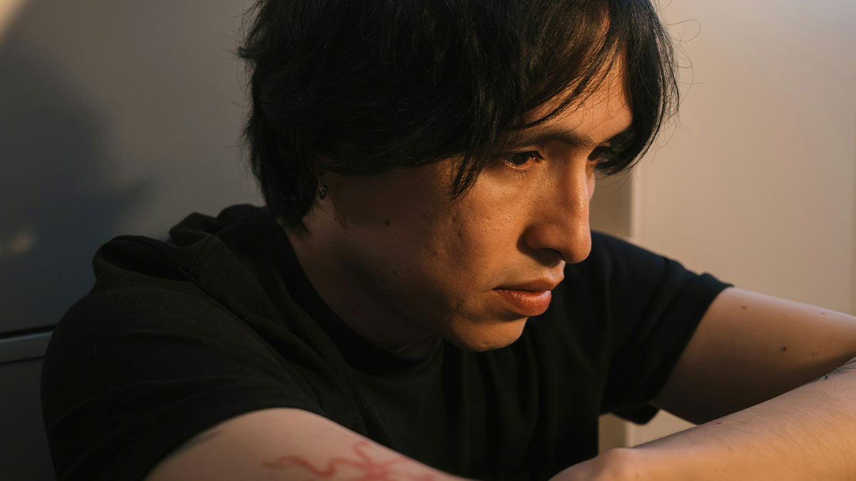Young man suspecting cheating, sitting alone with a thoughtful expression, contemplating roommate and girlfriend secrets.