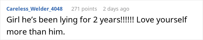 Load More Replies...You are worth it to be on a honest relationship. This guy lied to you for two years. It's better to dump him now than years down the road.