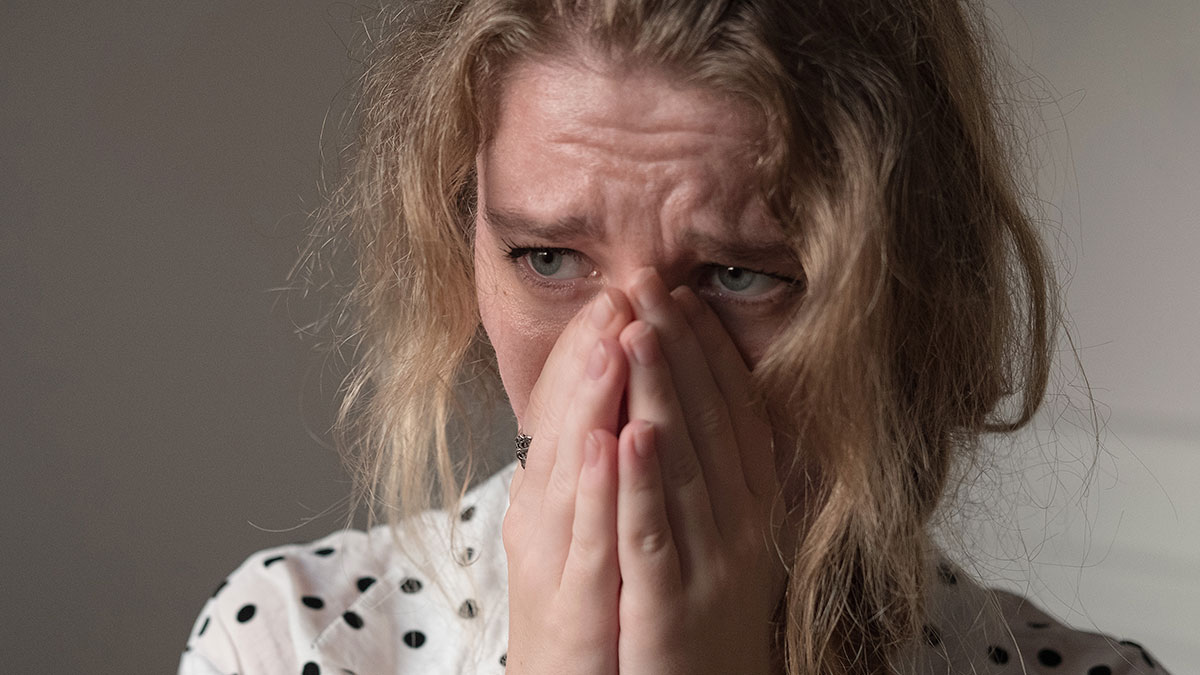 Woman covering her face in distress, reflecting the shock of a boyfriend learning the truth about job pretenses after six months.